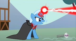 *Boast Busters made my S1 top 10, but didn't make my overall favorite episode lists despite being Trixie's at-the-time only episode, because it kind of sucked. Trixie was awesome, but the episode itself was lame. I mean really, she comes to town to put on a free magic show, she even has her own stage wagon with fireworks/trumpets/etc., and immediately Spike/Rarity/Applejack/Rainbow Dash start whining and heckling, interrupting the show. Luckily, they all get embarassed on stage, except Spike, but later Trixie's wagon, which is most likely her home as well, gets destroyed. She suffers the consequences while the instigators pretty much got off with nothing more than quickly forgotten moments of shame. Still, she remained defiant, talking some smack to Twilight Sparkle then running off after dropping a smoke bomb. Which is why Trixie is awesome.