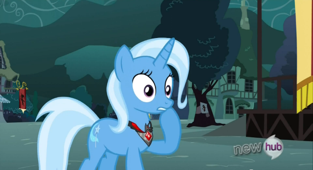 Trixie is being hauled back out to the forcefield and is annoyed at the prospect of it being a false alarm, she sees Twilight.